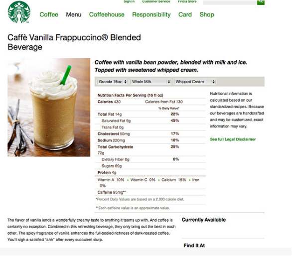 產(chǎn)品詳情頁對于電商網(wǎng)站非常重要,產(chǎn)品信息必須在保證真實的基礎(chǔ)上,優(yōu)化細(xì)節(jié),盡可能的誘人,這樣才能有效的吸引顧客。比如星巴克的產(chǎn)品頁面,不僅有誘人的實體展示,有很多不同口味的飲品讓你選擇,這樣讓用戶有很大的選擇空間,用戶自然而然就會高興咯。