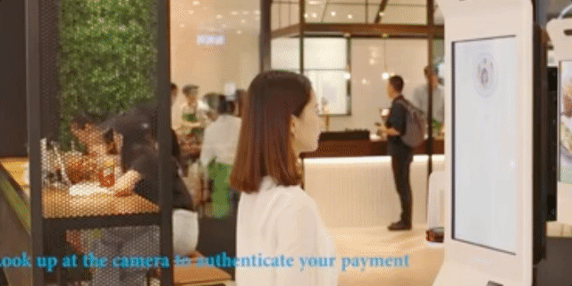 視頻中,一位消費(fèi)者使用 KPRO 門店內(nèi)的點餐機(jī)下單,在支付環(huán)節(jié)選擇了刷臉支付。之后,該用戶看向點餐機(jī)上方的攝像頭,露出了她微微的笑容。機(jī)器在 1、2 秒之內(nèi)準(zhǔn)確識別出了該用戶,用戶輸入手機(jī)號后確認(rèn)了這次付款。
