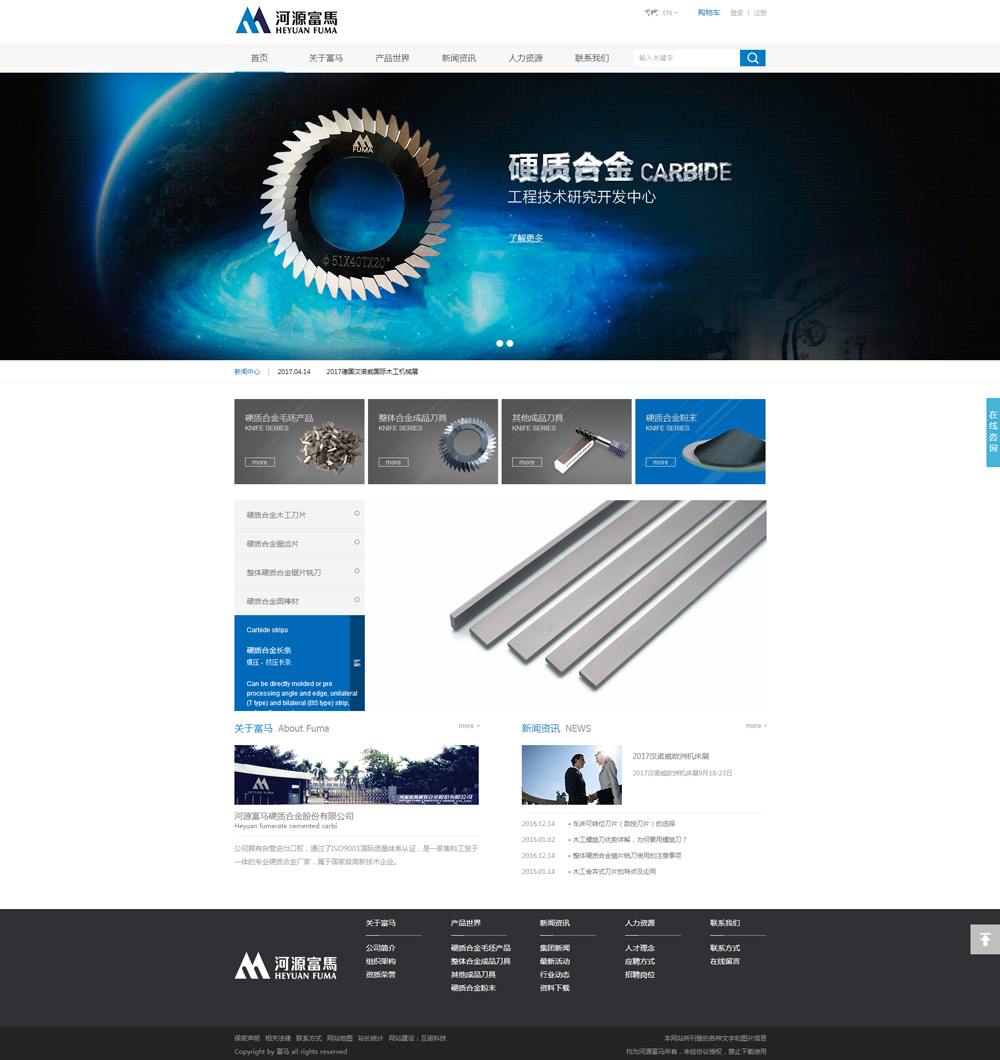 公司位于廣東省河源市仙塘經(jīng)濟(jì)開發(fā)區(qū),屬于國家級高新技術(shù)企業(yè)、廣東省創(chuàng)新型企業(yè)、廣東省戰(zhàn)略性新興產(chǎn)業(yè)骨干企業(yè)廣東省知識產(chǎn)權(quán)優(yōu)勢企業(yè),是國內(nèi)專業(yè)化的超小超薄硬 質(zhì)合金制品及其深加工制品生產(chǎn)廠家,建立有廣東工業(yè)大學(xué)河源富馬硬質(zhì)合金股份有限公司博士后創(chuàng)新實踐基地、廣東省級企業(yè)技術(shù)中心、廣東省硬 質(zhì)合金工程技術(shù)研究開發(fā)中心和廣東省教育部產(chǎn)學(xué)研結(jié)合示范基地"切削難加工金屬材料專用刀具工程研究院"等高標(biāo)準(zhǔn)研發(fā)平臺,通過了ISO9001國際質(zhì)量體系、ISO14001環(huán)境 體系認(rèn)證和廣東省清潔生產(chǎn)審核,"富馬硬質(zhì)合金"圖形商標(biāo)被認(rèn)定為廣東省著名商標(biāo),"富馬硬質(zhì)合金"產(chǎn)品被評為廣東省名牌產(chǎn)品。